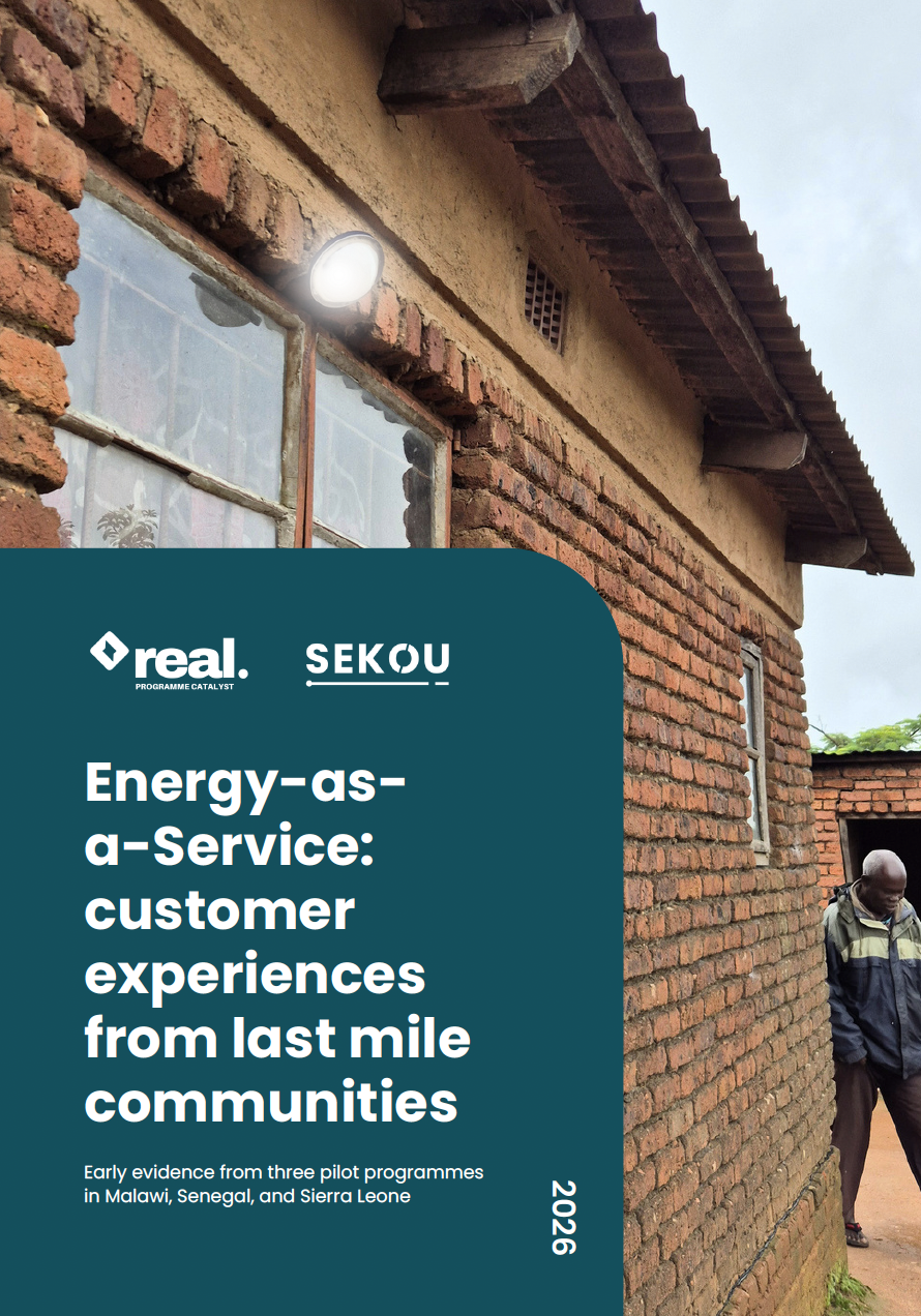 REAL Programme Catalyst, in partnership with consulting firm SÉKOU has published a new report offering early insights into customers’ experiences of our Energy-as-a-Service (EaaS) model. Drawing on independent survey data from pilot programmes in Senegal, Sierra Leone and Malawi, the report highlights both the impact and the potential of a service-based approach to delivering solar home systems (SHS) at scale.